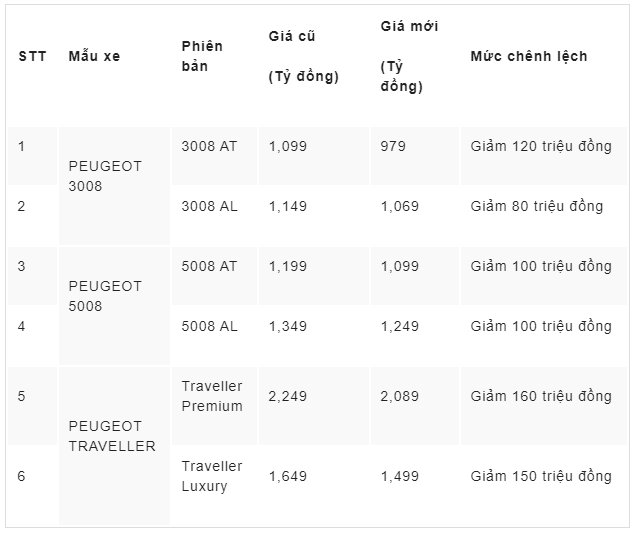 Cụ thể, các mẫu Peugeot 5008, Peugeot 3008, Peugeot Traveller đều có mức giảm từ 80 triệu đến 160 triệu đồng. Như vậy, giá của phiên bản Peugeot 3008 AT sẽ chỉ còn 979 triệu đồng - trở thành một trong những mẫu xe SUV Châu Âu có mức giá dễ tiếp cận nhất phân khúc. Điều này khiến khách hàng ngày càng quan tâm đến thương hiệu xe Pháp.